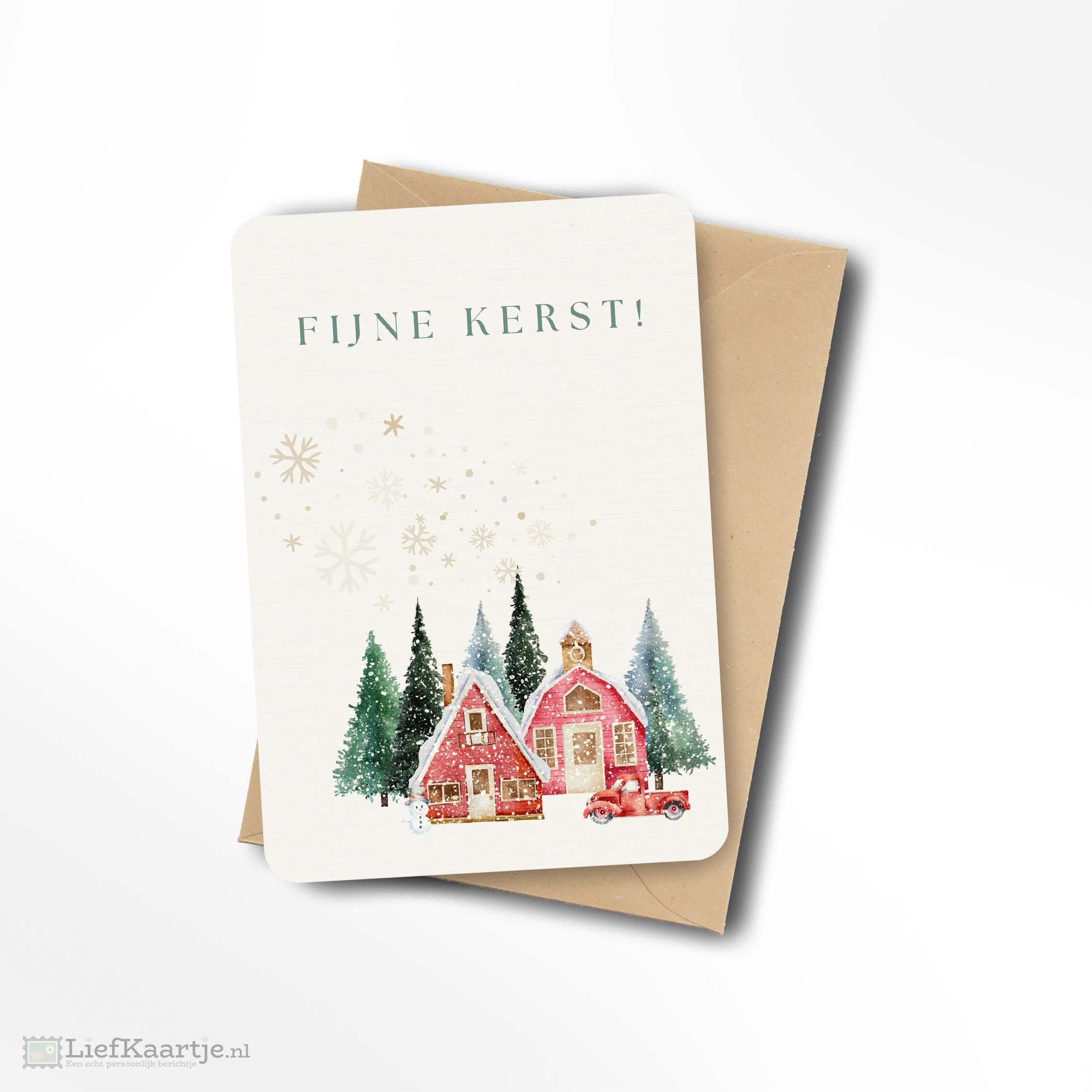 Ben jij ook zo dol op kerst dat je eigenlijk niet kan wachten tot het zover is? Deze sfeervolle kerstkaart in Amerikaanse stijl brengt je helemaal in de knusse kerstsfeer! De prachtige illustratie van een gezellig boerderij met sneeuw en kerstbomen maakt het een perfecte kaart om te versturen. Gemaakt van luxe Oud Hollands papier en inclusief kraft envelop. 🎄✨